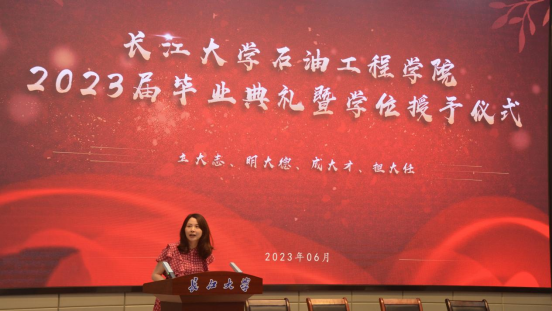 (通讯员 曾妍)肩负使命,志存高远,传承石油精神;砥砺前行,奋力开拓,谱写青春乐章。6月8日下午,永利3044集团官网举行2023届毕业典礼暨学位授予仪式。永利3044集团官网院长江厚顺、副院长李忠慧、张引弟、院长助理郑双进,导师代表喻高明教授、付美龙教授,各系系主任、毕业生班主任、全体辅导员以及毕业生到场参会,学院党委副书记刘娥主持典礼。