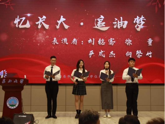 仪式第四项,原创诗朗诵《忆长大·追油梦》。“大创的题目还记得吗?金工实习磨的锤子还在吗?”他们以饱含深情的诗句和激情洋溢的朗诵,从校园生活到实习实践,细数在长大求学之路,讲述难舍“油工”情,深深打动了在场全体师生的心。