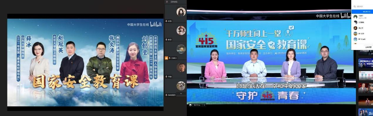 各班安全员带领同学们深入学习国家安全知识,开展了以国家安全为主题的班会,组织同学们“同上一堂国家安全教育课”,通过中国大学生在线网站学习国家安全教育教学视频。高校教师、公安民警围绕如何维护网络安全和数据安全,如何反诈防骗,如何反间防谍等主题,以生动真实的案例讲述了当前国家安全和和保密工作面临的挑战,教育引导广大师生贯彻总体国家安全观,增强全民国家安全意识和素养,使同学们牢固树立了国家安全意识。