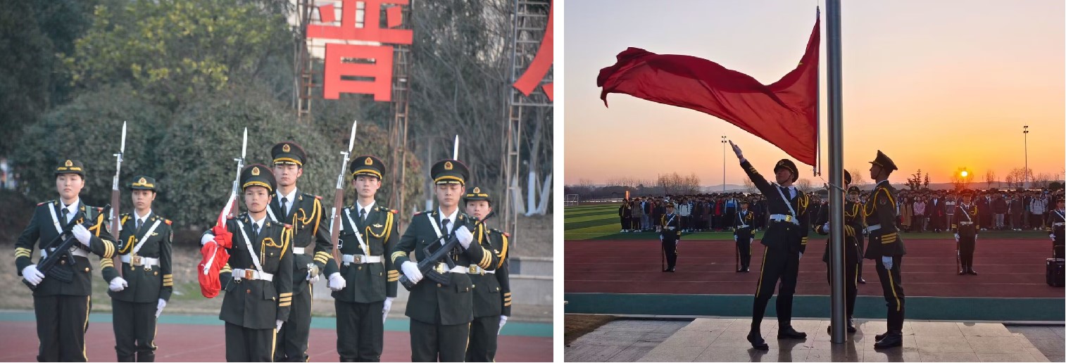 国旗护卫队踏着正步,擎举国旗,缓缓走向升旗台。他们眼神坚毅,步伐坚定,一举一动尽显长大学子风采。五星红旗冉冉升起,雄壮的国歌声响彻校园。全体师生行注目礼,升国旗,奏唱国歌。
