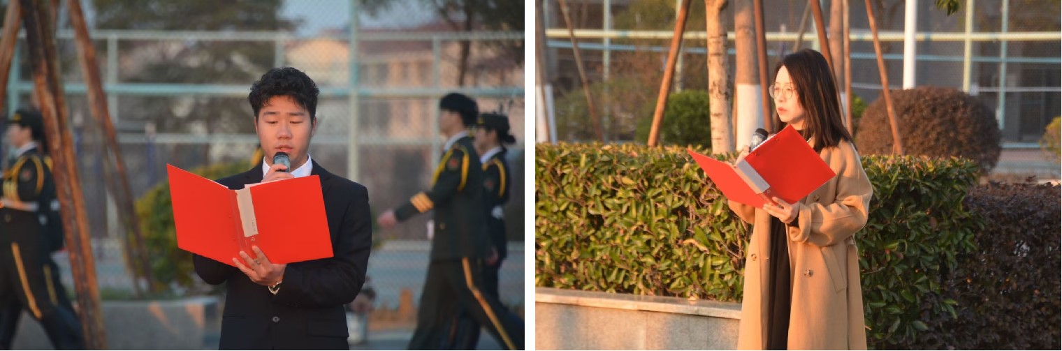 油工22201班祝筠邑作为学生代表发表题为“青春共奋进,助力双一流”的国旗下讲话。他倡议同学们:一是制定计划,明确目标,规划好自己的大学生活;二是超越现实,突破自己,发掘个人潜在能力;三是坚定信念,众志成城,助力双一流建设,共同奋进新征程。