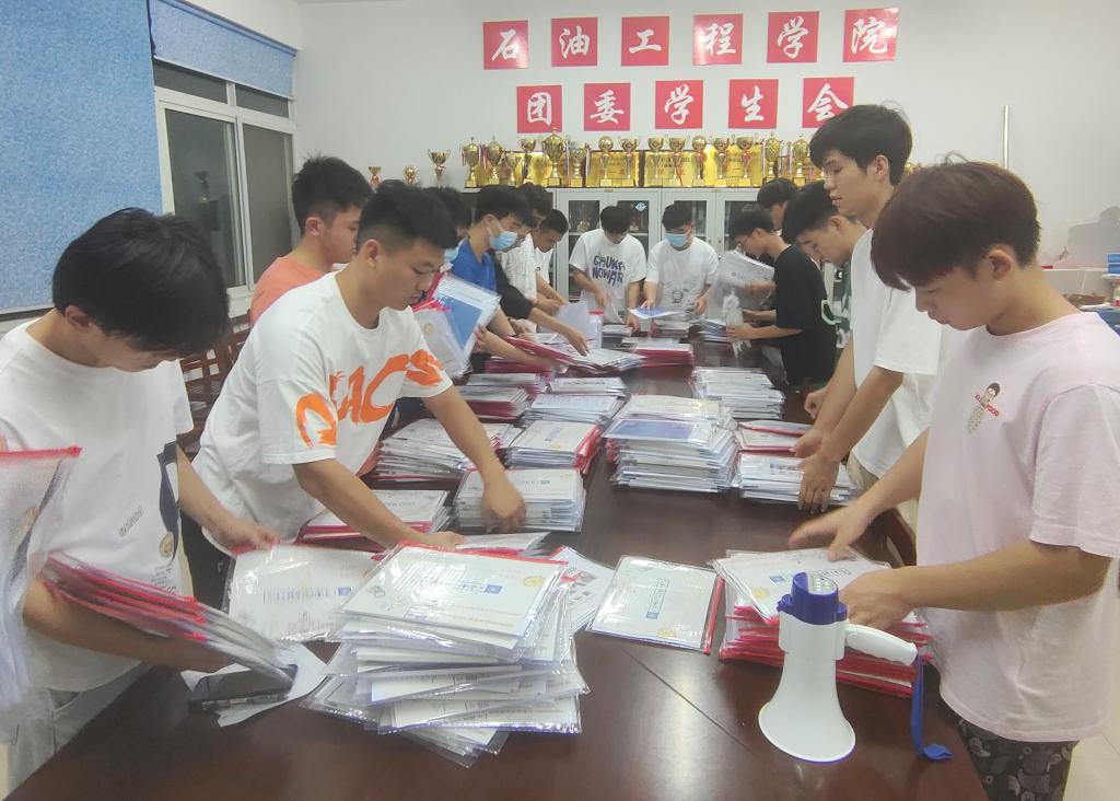 学院为475名新生提前准备了“迎新包”,定制学院标识和院训,引导新生爱校荣院。