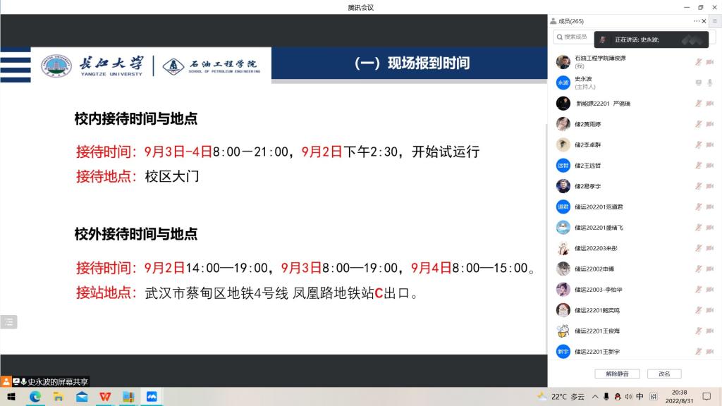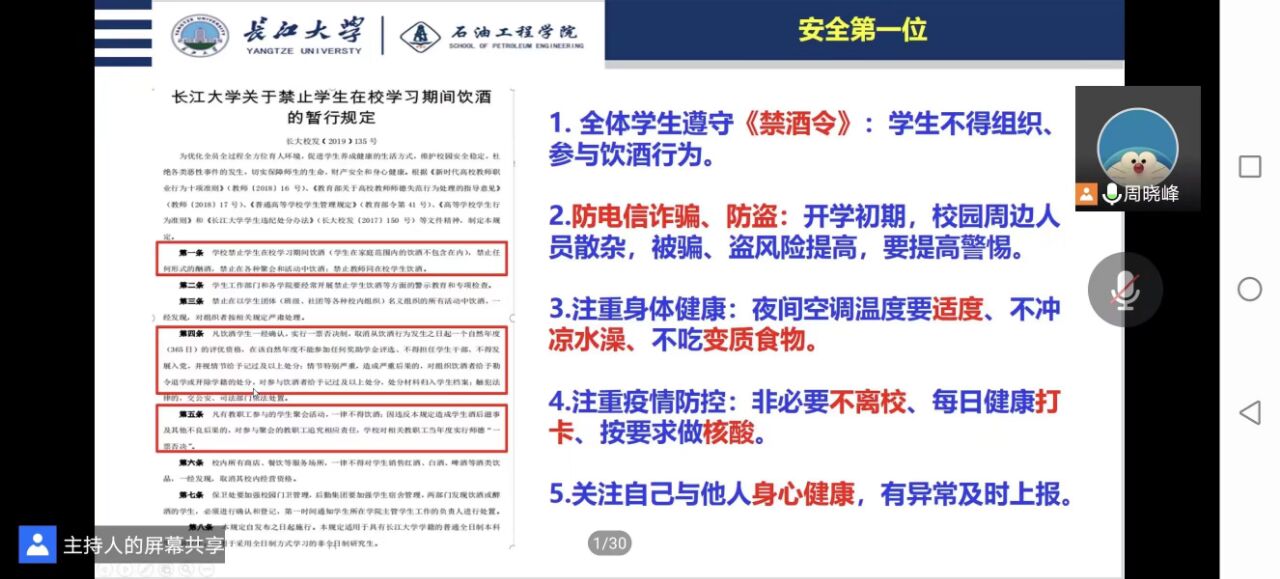 (通讯员 周晓峰)为进一步引导新生了解校史院情,自觉遵守疫情防控规定,做好开学前的准备工作,8月31日晚,永利3044集团官网召开2022级本科新生线上主题班会,辅导员史永波、周晓峰主讲,学生助导和470余名本科新生参加。