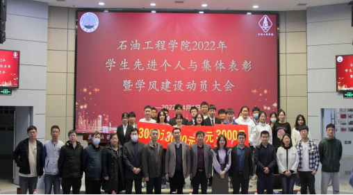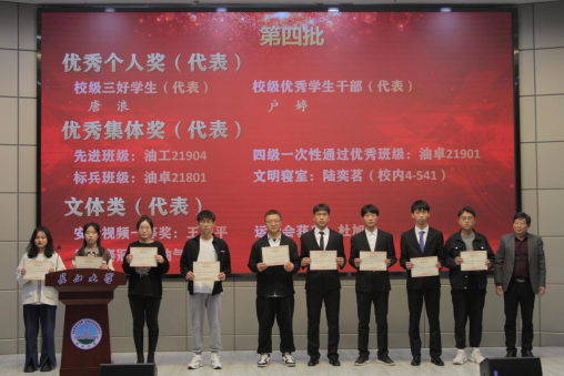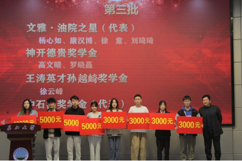 副院长李忠慧教授为“文雅”油院之星、神开德贵奖学金、王涛英才奖学金、孙越崎奖学金以及中石油奖学金获得者代表颁奖。