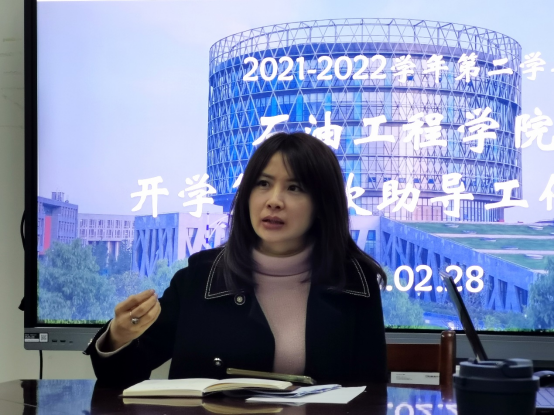 (通讯员 唐玲)2022年2月28日晚6点,学院于华林二栋四楼活动室召开本学期第一次班级助理导师例会。院党委副书记刘娥主持会议,辅导员商麟鑫老师和全院2021级助导参加会议。