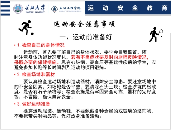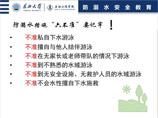 夏季溺水事故频发,为了同学们自身安全、避免溺水事件的发生,老师们提醒同学们切忌到江、河、湖处游泳。据统计,我国每年大约有57000人溺水,相当于每天有150人溺水死亡。生命可贵,水火无情。在锻炼身体,从事各项体育运动的过程中,也要注意运动安全,保障自身身体健康。同学们在运动方面要做好这三个要求,即:运动前准备好,运动时讲科学,运动后要恢复。免于伤痛,才能让同学们享受运动带来的快乐。在会上,老师公布了学院防溺水救生设备存放地址为华林公寓2-301商老师办公室内,集体外出时应随身携带。同时统计汇总了基础性疾病的情况。
