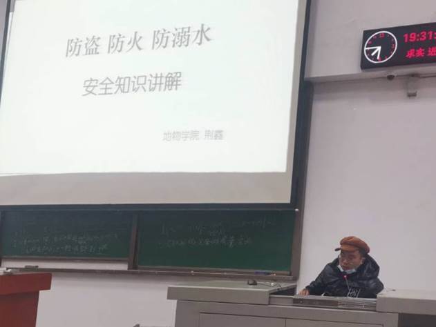 地球物理与石油资源学院的荆鑫老师用幽默诙谐的语言别开生面地为同学们讲解了关于防火、防盗、防溺水的相关知识。针对防盗问题,他谈到,学校的篮球场和操场都是对外开放的场所,物品较易在此类地方丢失,同学们一定要保管好自己的财物。并为了让同学们更加直观的了解到消防的必要性,他讲述了武汉校区两次较大规模的火灾,向同学们说明了火灾所带来的严重后果。最后,他从常见的溺水原因、如何预防溺水、落水如何自救、到别人落水如何施救这四个方详细地讲述了防溺水的相关内容。