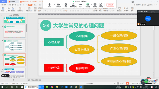 为做好秋季开学后学生心理健康教育工作,落实常态化疫情防控形势下的心理适应,提升学生骨干自助与互助水平,9月24日下午3时,永利3044集团官网通过腾讯会议开展了2020年秋季学生骨干心理健康教育线上培训工作。此次培训由学院心理专干朱小露老师主讲,本科生、研究生班级班长、团支书、心理委员、安全委员、寝室长参与此次培训。