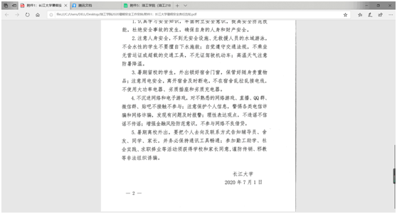 (通讯员 董云戈 张富磊)2020年7月3日,油工21805班全体成员通过腾讯会议开展2020年暑期安全教育班会,就暑期放假事宜及总体安排、疫情防护、出行安全和防诈骗做了说明与提示。会议由班长董云戈主持,班主任纪国法老师补充和解答。