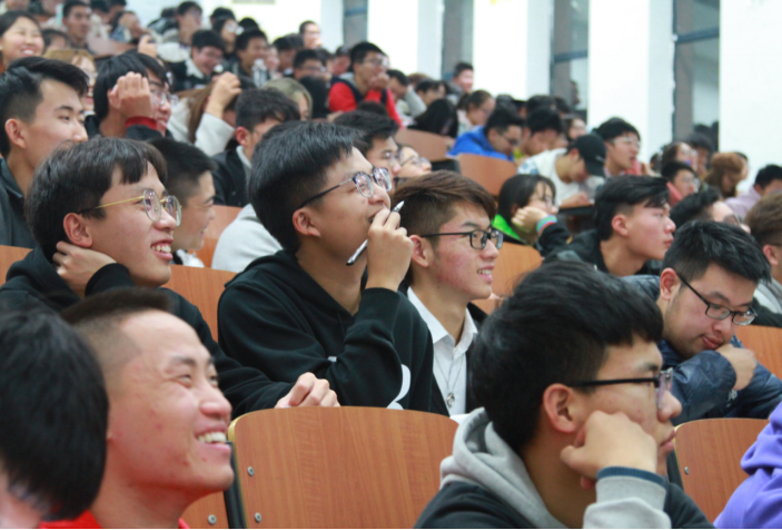同时,他也对如何度过大学四年提出了自己的建议。在学习方面,他讲道:“找到学习的乐趣是第一步;其次,学会自学更加重要;再者,要利用好平时和周末的空闲时间来多读书,以此提高自己的科学文化素质。”在生活方面,他认为身处“温室宝宝”时代的当代大学生更应该学会独立生活,要有责任和担当精神,多一份“公益”,少一份“私利”……说到职业规划,他强调:“我们每一个人都要做不一样的自己,不断创新,在创业的路上不要急躁,耐心地学点真本事,同时多关注一点社会时事,跟上时代的脚步。”沈老师的讲座精彩不断,赢得了台下同学的一片片掌声。