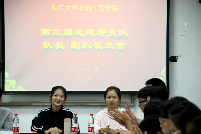 会上,第二届支队长吴玉婷发表讲话,她说到:“我希望你们一是能够保持热情,从身边的小事做起,二是要放低姿态,同时也要尊重他人。”她还特别强调保护他人的隐私,并以拍照为例加以说明。最后由副队长皮莎发言,她同样对新老队员们表达了自己的期望,她希望干事们能够持之以恒,积极投身到活动中去,为志愿服务贡献出自己的一份力量。