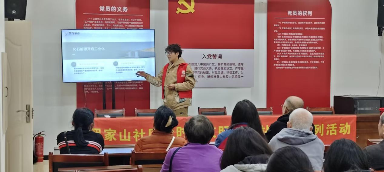 2025年3月27日,永利3044集团官网黑油能源科普宣讲队的队员前往罗家山社区开展能源科普宣讲活动。主讲人程煊若以“能源变迁的历史”为主线,生动展现了能源形态与人类文明的深度绑定。结合北京胡同燃气地暖、特斯拉超级充电站、智能家居生态等案例,阐释了新能源技术如何重构居住、交通与消费场景。并呼吁居民从节电节能、支持新能源设施等小事做起,共同参与绿色转型。此次宣讲以深入浅出的科普形式,不仅架起了能源技术与日常生活的桥梁,也让志愿队的同学们与社区同频共振,扎根人民群众,为迈向可持续未来凝聚了共识与行动力!