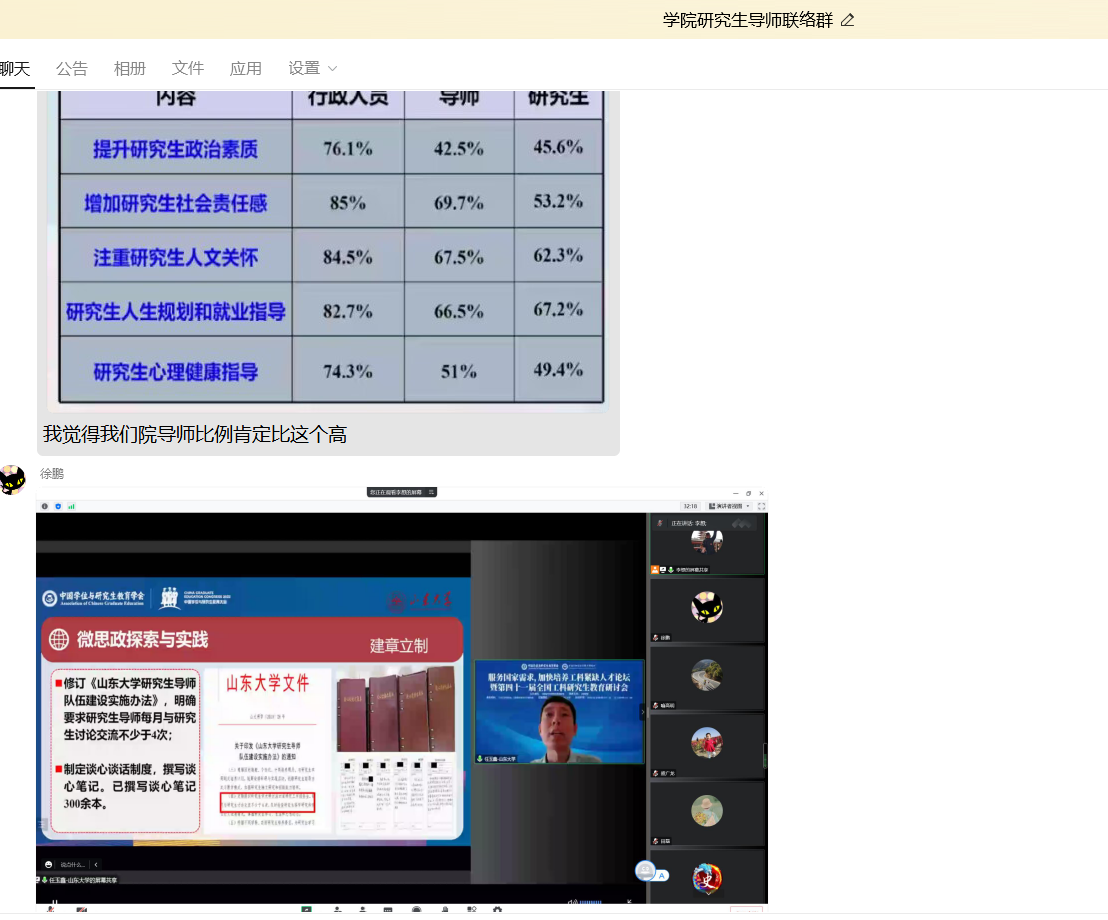 2022年12月4—5日武汉召开学位与研究生教育大会线上会议,永利3044集团官网统利用此次契机,组织全院研究生导师进行以下相关内容学习。本次线上会议学习,六十多名研究生导师在会议进行中进行探讨学习,受益良多。