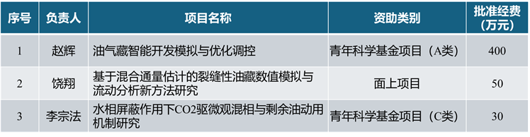 赵辉教授申报的“油气藏智能开发模拟与优化调控”项目获青年科学基金项目(A类)(原国家杰出青年科学基金项目)资助400万元,其研发的智能油藏开发技术已深度应用于中海油OSIM软件及雪佛龙、壳牌等国际企业系统,助力国产化技术替代,标志着学校在高层次人才培养与核心技术攻关中取得历史性突破。饶翔副教授的面上项目、李宗法讲师的青年科学基金项目(C类)同步获批,三类不同层次项目落地,既契合国家战略需求,也展现了团队从领军人才到青年骨干的完善梯队。