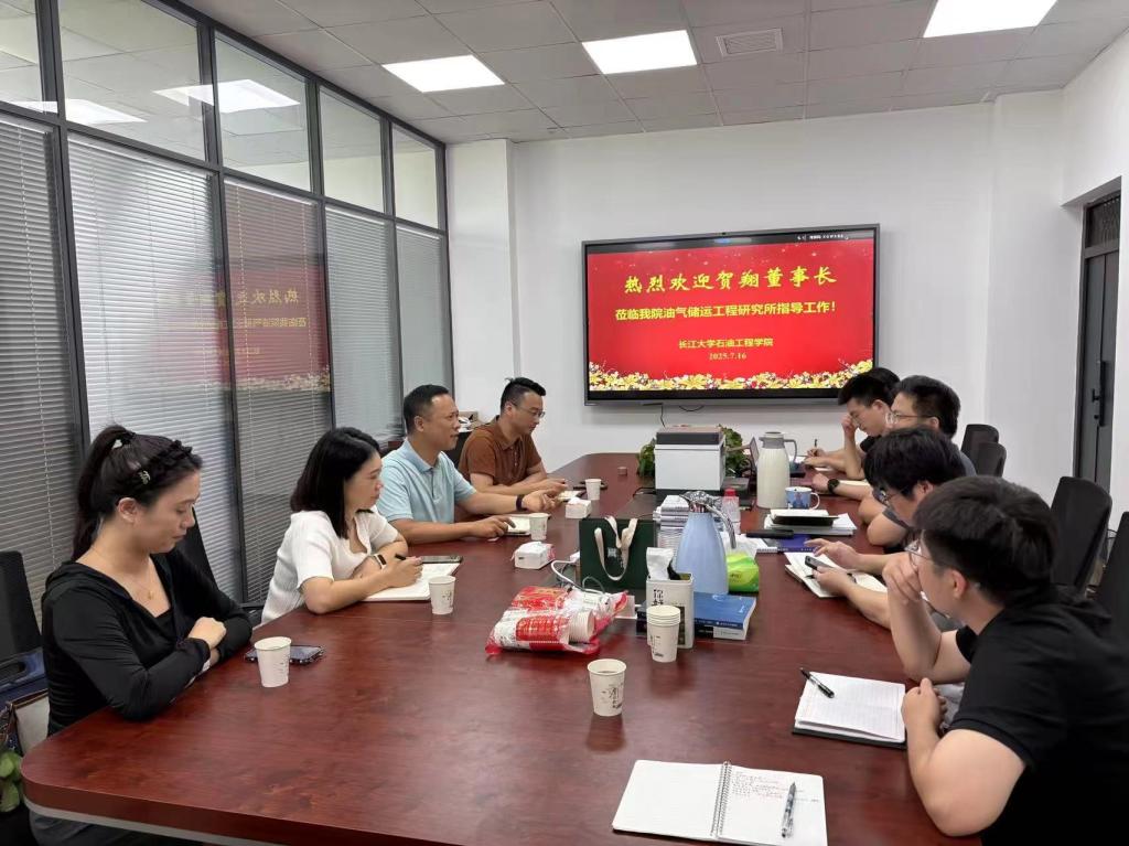 贺翔董事长介绍了公司在油气管道输送领域的发展方向与科研需求,重点关注储运所在数值传热、管道掺氢输送等方面的研究。交流环节,双方围绕天然气压差能发电、LNG冷能梯级利用等关键技术展开深入探讨。贺翔董事长表示,希望与学院建立更紧密的对接机制,共同突破天然气站场能源综合利用技术瓶颈,实现互利共赢。